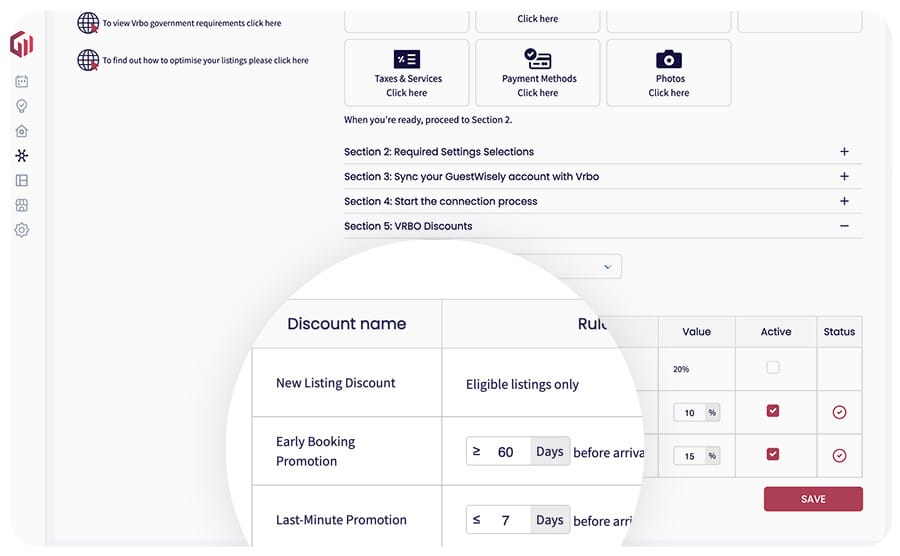 You can now activate and manage your Vrbo-specific discounts without leaving our platform. Simply navigate to the Vrbo setup page on GuestWisely and head over to “Step 5” to get started. This straightforward process allows you to deploy targeted promotions effortlessly.