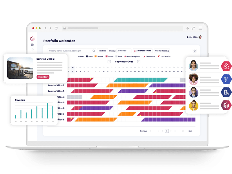 Manage reservations, guest inquiries, and property availability from one centralized Property Management System calendar, fully integrated and built for short-term rental professionals.