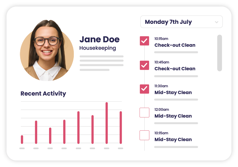 Automatically assign cleaning tasks based on check-out dates, property type, or booking source. Get real-time updates when tasks are completed.