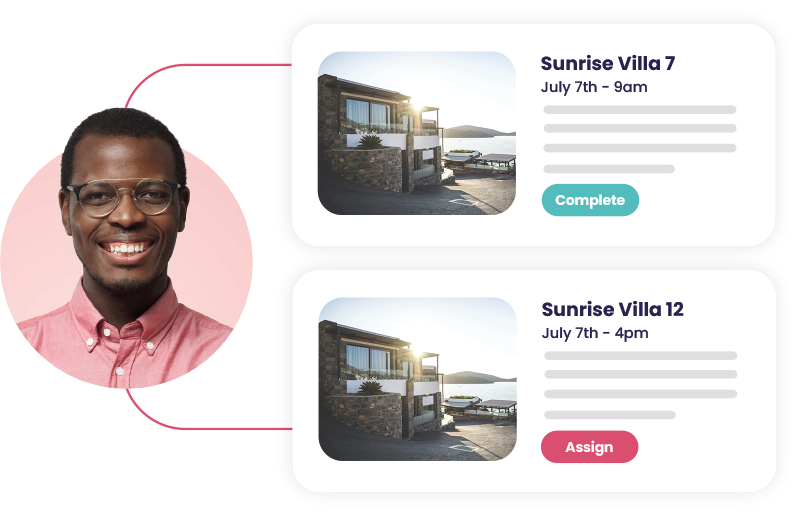 All tasks are tied directly to property records and linked to specific bookings when relevant. This ensures cleaning, repairs, and service delivery stay aligned with guest timelines.